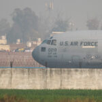 A U.S. military plane deporting illegal Indian immigrants lands in Amritsar, India February 5, 2025. REUTERS/Adnan Abidi