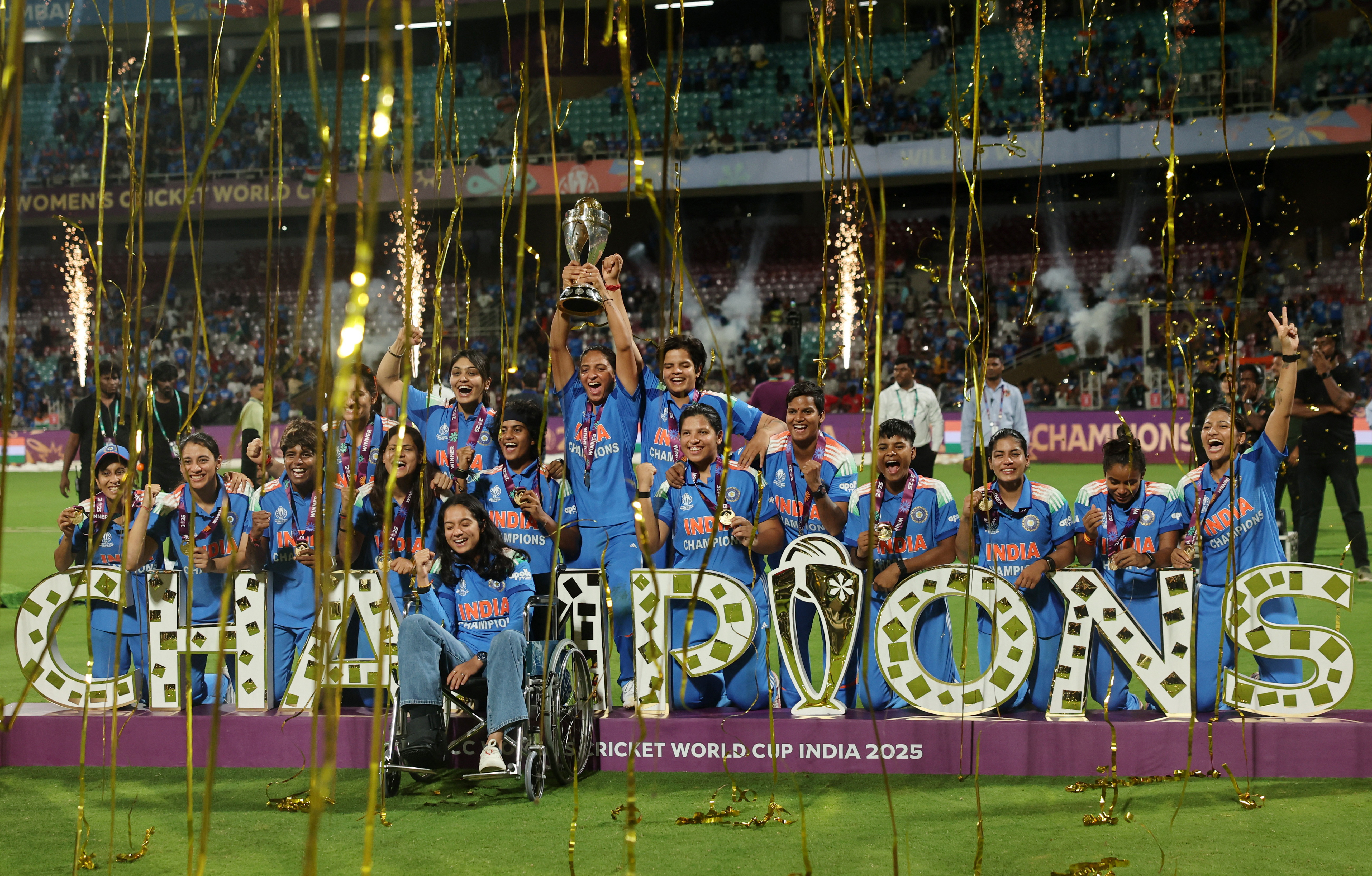 NAVI MUMBAI, India (Reuters) -India’s agonising wait for a maiden Women’s World Cup title finally came to an end as Harmanpreet Kaur and her teary-eyed teammates clinched the trophy by beating South Africa in a dramatic final at the DY Patil Stadium on Sunday.