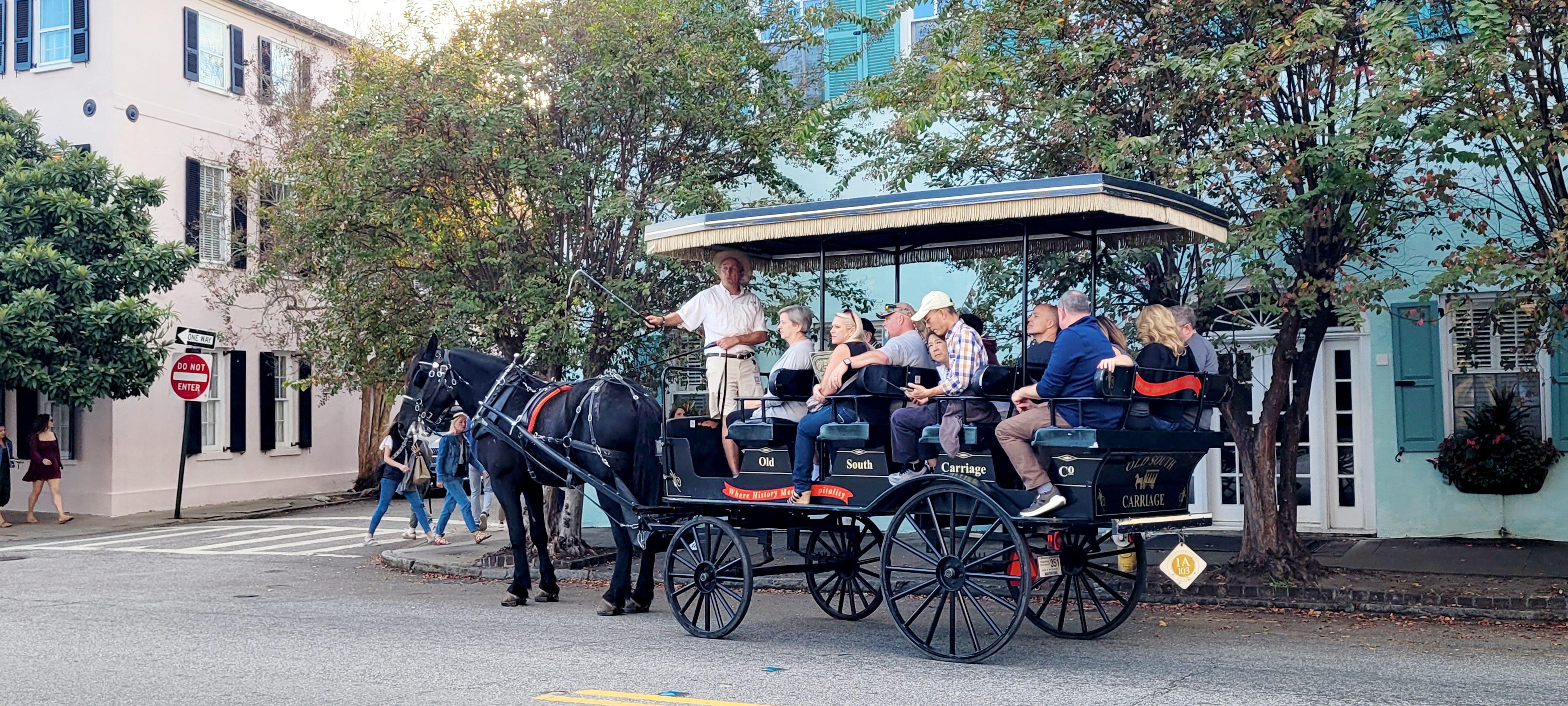We enjoyed the historic highlights of Charleston’s past, sightseeing, flora, and the unique architecture of “Holy City” on a 1-hour, memorable, friendly guided, beautifully horse-drawn carriage ride of Old South Carraige, Charleston. We learned about the carriage tours’ unique city-regulated lottery system, a thoughtful approach to traffic management.