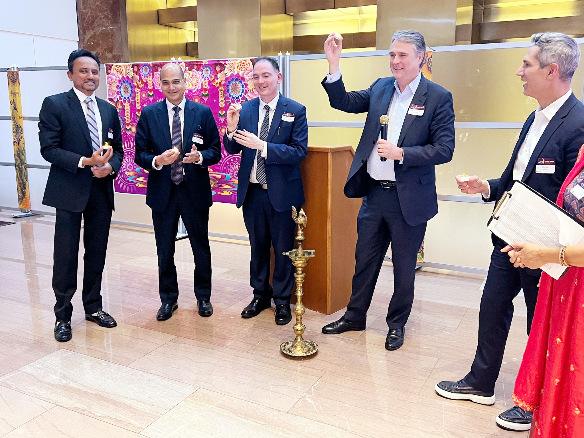 HSBC CEO and Chairman of the Board, Michael Roberts, hosted Diwali celebrations in the company’s New York City office. At the celebration, Keyur Shah, co-founder of Leap to Shine, a well-regarded non-profit, along with Roberts, Indian Deputy Consul General Dr. Varun Jeph, and NYC Deputy Commissioner Dilip Chauhan, lit the ceremonial lamp.