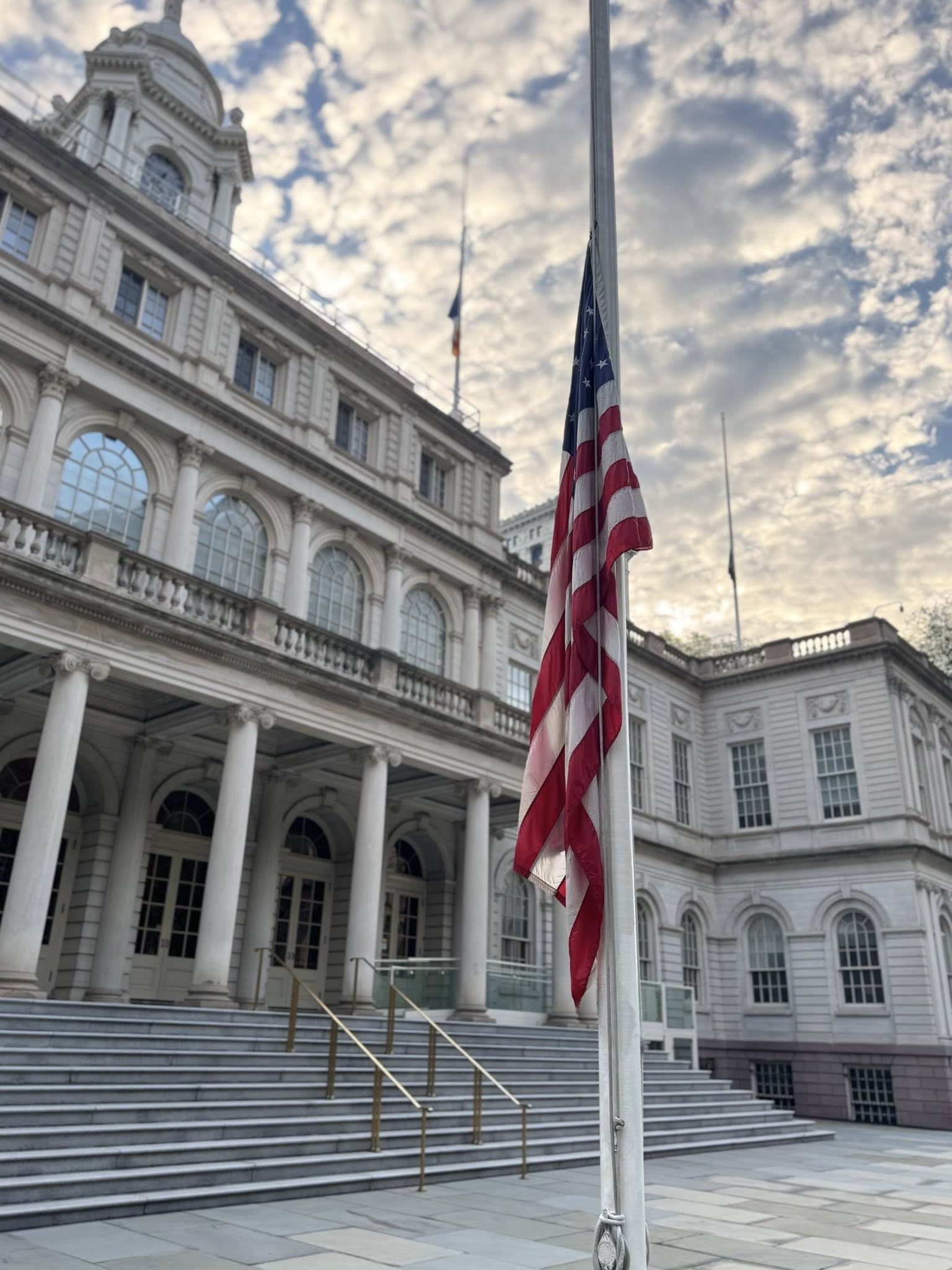 On his Facebook account, Mayor Adams showed flags at half-mast, noting, “As a mark of respect for the memory of NYPD Officer Didarul Islam who died in the line of duty and the multiple victims of the mass shooting in Midtown Manhattan at 345 Park Avenue yesterday, I’ve ordered all flags on all city buildings and stationary flagstaffs throughout the five boroughs to be lowered to half-staff until further notice.”